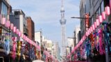 仙台のアーケードに飾られた折り鶴の七夕飾り